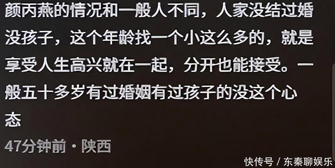 记得前些年颜丙燕在节目里提过,家里人都为她没有对象、不结婚的事情操心不已。颜丙燕曾坦言,岁数越大,对伴侣的挑剔也越明显,不符合自己标准和期待的,一定不会随便凑合。没想到这么多年下来,她竟然真遇到了一位彼此契合的真爱。
